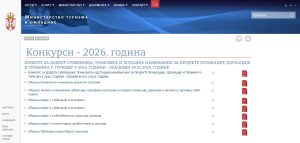Овде можете приступити директно страници која се тиче свих конкурса у 2026. години на сајту Министарства туризма и омладине